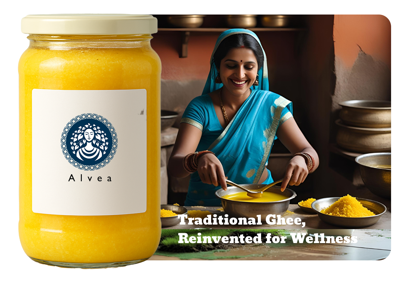 Our A2 Gir Cow Ghee is crafted the traditional way from slow-churned curd using Bilona methods to retain its full spectrum of nutrients and rich aroma. Packed with Omega-3 fatty acids, Vitamin A, and antioxidants, it’s ideal for improving digestion, boosting memory, and promoting glowing skin. Loved by Ayurvedic practitioners and fitness enthusiasts alike, this golden elixir is more than just a cooking ingredient, it’s nourishment in its purest form. With no preservatives or chemicals, every spoon of Alvea’s A2 ghee delivers wellness from within. Add it to your rotis, rice, or even your morning coffee for a daily dose of desi vitality.