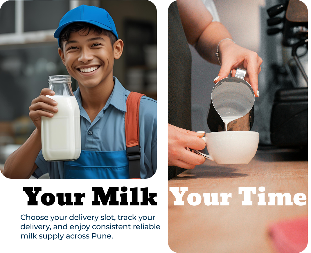 Tired of inconsistent milk supplies and missed deliveries? Alvea brings precision, convenience, and peace of mind to your morning routine. With our intelligent delivery system, you can choose your delivery slots, pause when you travel, and track your milk’s arrival. We deliver fresh A2 Gir Cow Milk daily across Pune, ensuring you never have to worry about your family’s health essentials. Plus, our delivery staff are trained, punctual, and courteous, respecting your time and space. No more early morning runs to the store, just dependable, door-step service that keeps your family nourished every single day.